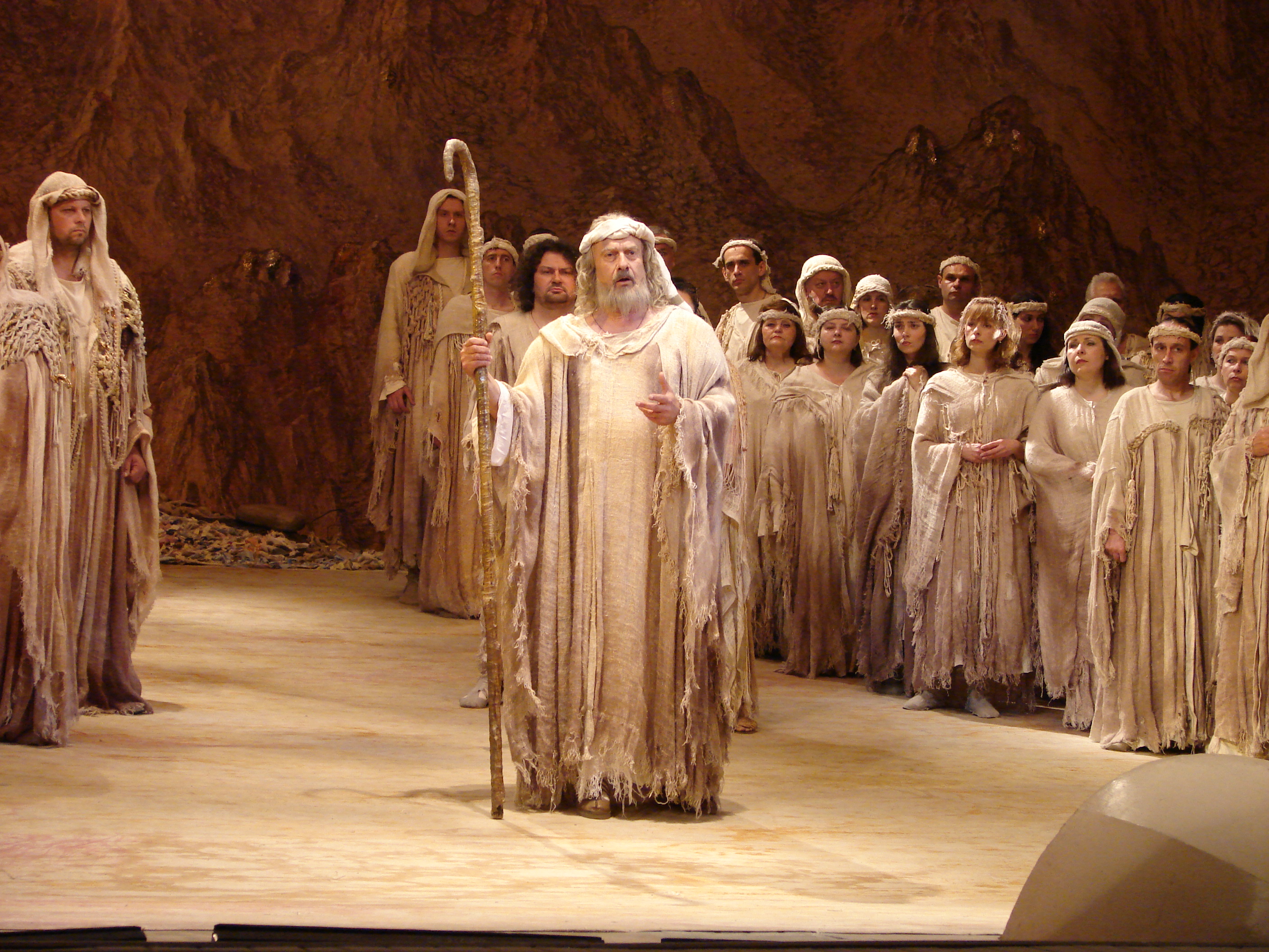 Постановниками цього знакового для сучасного українського оперного мистецтва твору стали хормейстер Богдан Герявенко, сценографи Михайло і Тадей Риндзаки, художниця костюмів Оксана Зінченко, хореограф Сергій Наєнко, режисер Збіґнєв Хшановський. За диригентським пультом виступав сам автор або ж головний диригент театру – Михайло Дутчак. Уся концепція опери безумовно тримається на втіленні провідної партії Мойсея, яку на прем’єрних виставах виконував бас Олександр Громиш.