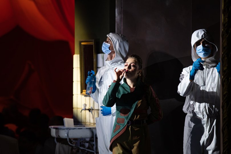 Дія обох опер відбувається у теперішній час. І режисерські, і сценографічно вони поєднані спільними, пізнаваними образами, що нагадують пандемію, проблеми ізоляції тощо.
